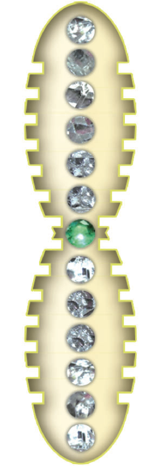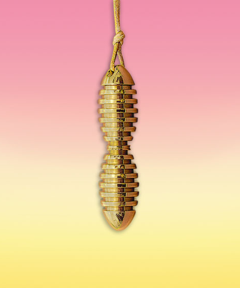 La cavità interna ospita 12 cristalli di rocca e uno smeraldo. Le pietre preziose sono montate su un’elica in filo d’oro a 26 spire che rappresenta il DNA umano.