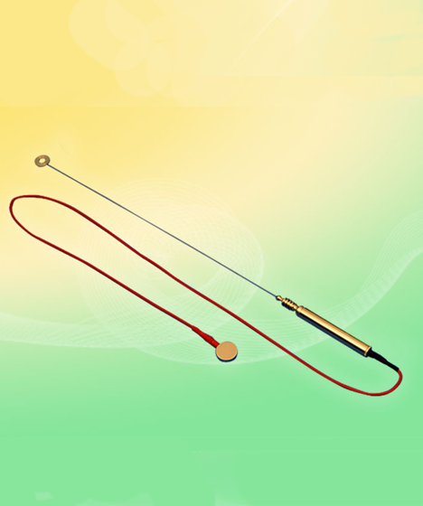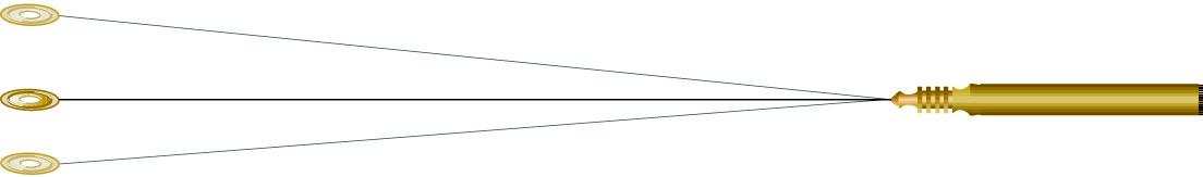 Introdurre l’estremità del cavo (parte nera), di polo negativo, nell’impugnatura del tensore e l’estremità di polo positivo (parte rossa) nel sondino dorato in ottone (Ø 3cm).